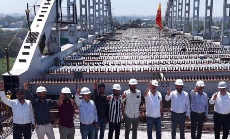 रात भर चली गर्डर लगाने की प्रक्रिया