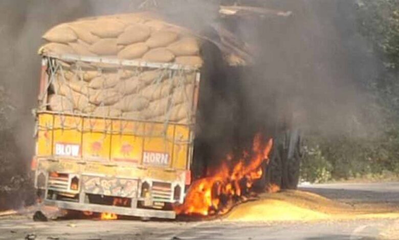 साल्हेवारा घाटी में बड़ा हादसा टला: मक्का से भरे ट्रक में अचानक आग, दमकल की तत्परता से बची बड़ी दुर्घटना