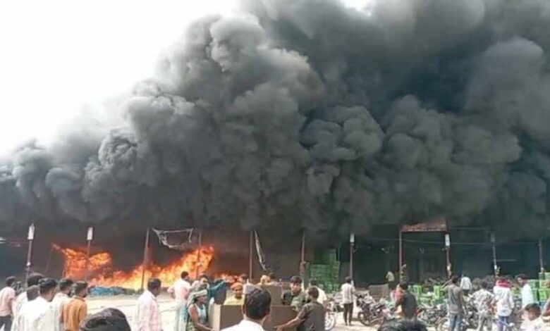 सब्जी मंडी में भीषण आग: लाखों का नुकसान, फायर ब्रिगेड की दमकल कर रही आग बुझाने के प्रयास