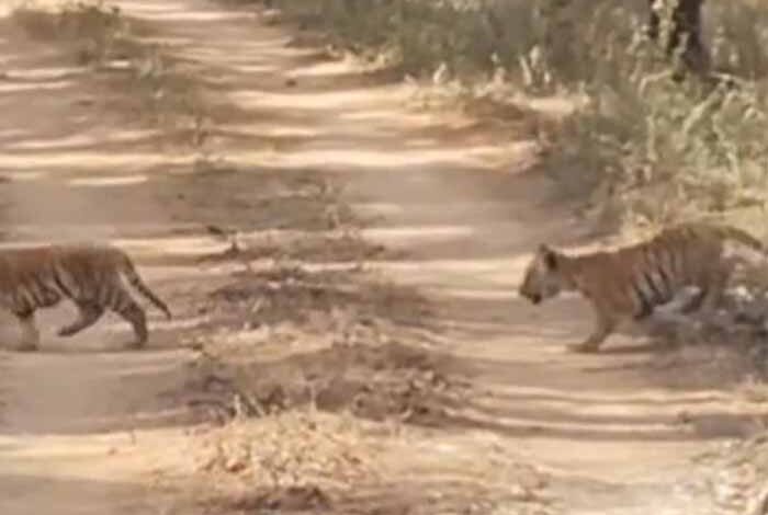 रविवार की सुबह खवासा-तेलिया गेट में सफारी कर रहे पर्यटकों के जिप्सी वाहनों के सामने बाघिन अपने पांच शावकों के साथ कच्ची सड़क पर आ गई। कच्ची सड़क से जंगल में दूसरी ओर जाती बाघिन काफी देर तक पर्यटकों को दिखाई दी, जिसका वीडियो सोशल मीडिया में वायरल हो रहा है। गौरतलब है कि 12 नवंबर को नाइट सफारी के दौरान खवासा बफर क्षेत्र में चार नन्हें शावकों के साथ जुगनी बाघिन के कच्ची सड़क में पर्यटकों के जिप्सी वाहन के सामने से गुजरने का वीडियो सामने आया था।
