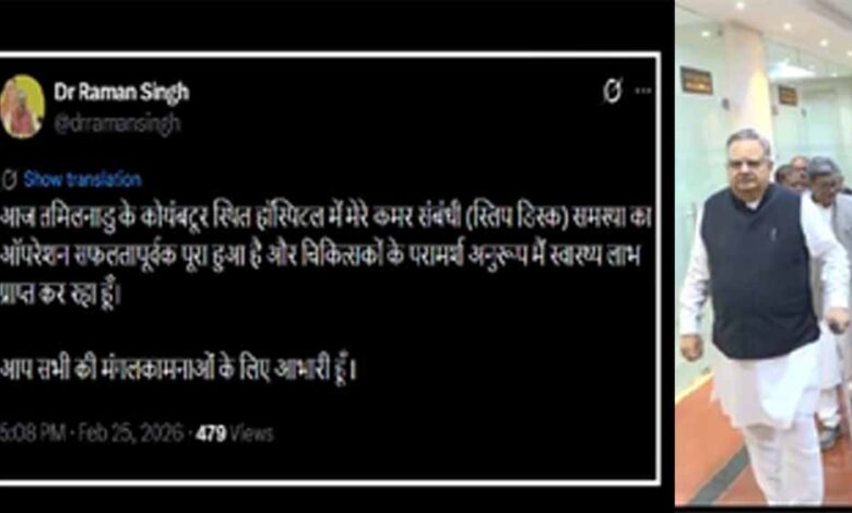 विधानसभा अध्यक्ष डॉ. रमन सिंह का स्लिप डिस्क का ऑपरेशन, सोशल मीडिया पर दी जानकारी