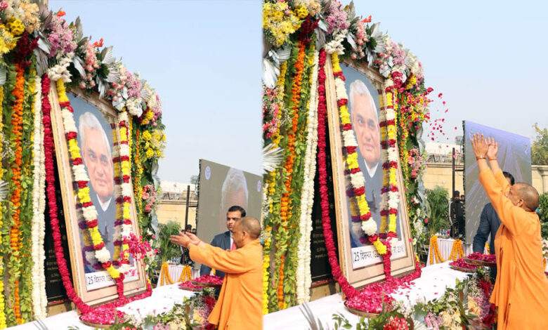 मुख्यमंत्री योगी आदित्यनाथ ने लोकभवन में पूर्व प्रधानमंत्री ‘भारत रत्न’ अटल बिहारी वाजपेयी जी की प्रतिमा पर की पुष्पांजलि