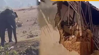 हाथियों के दल का खाड़ा गांव में हमला, मकान तोड़ा, दो गायों की मौत