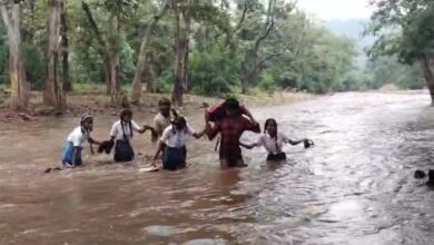 बारिश में फंसी स्कूली बच्ची, रेस्क्यू ऑपरेशन कर कराई नदी पार