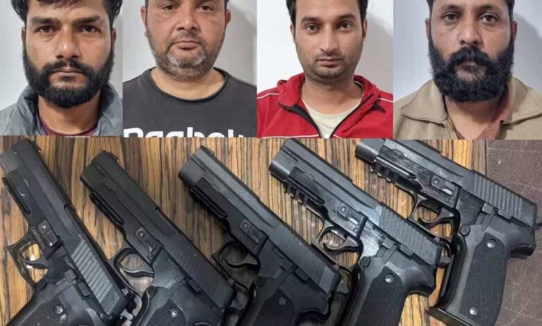 दिल्ली पुलिस ने गिरोह के चार सदस्यों को गिरफ्तार किया है, जिनकी पहचान मनदीप, दलविंदर, रोहन और अजय के रूप में हुई है। इनके कब्जे से चीन और तुर्की में बने 10 अत्याधुनिक सेमी-ऑटोमैटिक पिस्टल और 92 जिंदा कारतूस की बरामदगी हुई है। बरामद पिस्टल्स में तुर्की में निर्मित PX-5.7 और चीन में निर्मित PX-3 शामिल हैं। ये पिस्टल बेहद खतरनाक हैं, जिनका इस्तेमाल आमतौर पर स्पेशल फोर्स में होता है।