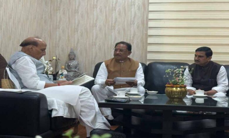 छत्तीसगढ़ के मुख्यमंत्री विष्णुदेव साय ने आज केंद्रीय रक्षा मंत्री राजनाथ सिंह से मुलाकात कर बिलासा देवी केंवट एयरपोर्ट, चकरभाठा (बिलासपुर) के विस्तारीकरण से संबंधित विषयों पर विस्तृत चर्चा की. इस महत्वपूर्ण बैठक में केंद्रीय आवासन एवं शहरी कार्य राज्य मंत्री और बिलासपुर के सांसद तोखन साहू भी शामिल रहे.