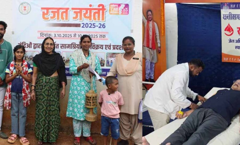 राज्य शासन के निर्देशानुसार छत्तीसगढ़ स्थापना की रजत जयंती के उपलक्ष्य में जेल एवं सुधारात्मक सेवाएं विभाग द्वारा 3 अक्टूबर से 10 अक्टूबर 2025 तक रजत महोत्सव का आयोजन किया जा रहा है। इस महोत्सव का शुभारंभ आज केन्द्रीय जेल रायपुर में रक्तदान शिविर के साथ हुआ।