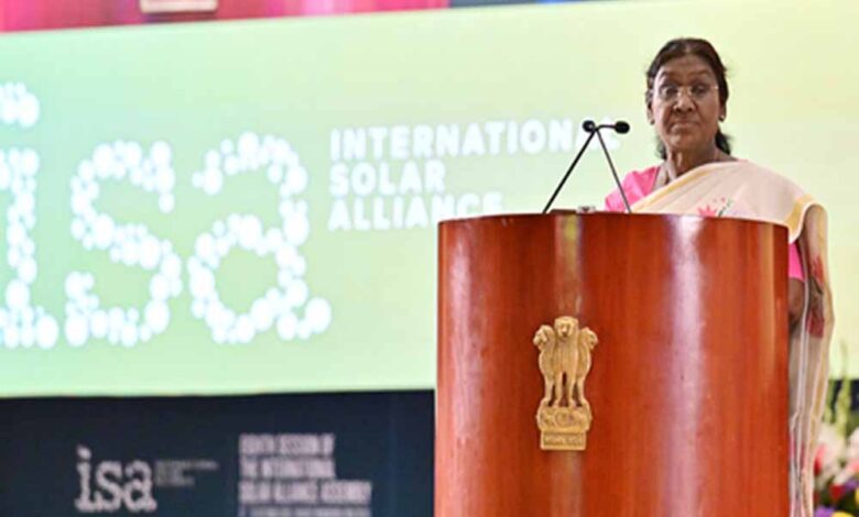 राष्ट्रपति द्रौपदी मुर्मू ने मंगलवार को कहा कि 2050 तक भारत न केवल अपने क्लीन एनर्जी टारगेट्स को पूरा करना चाहता है, बल्कि एक ऐसा हब भी बनना चाहता है जो ग्लोबल सोलर मांग को एकीकृत करे और इनोवेशन, मैन्युफैक्चरिंग और नॉलेज के आदान-प्रदान को बढ़ावा दे। राष्ट्रीय राजाधानी में भारत मंडपम में इंटरनेशनल सोलर एलायंस (आईएसए) की असेंबली के आठवें सत्र को संबोधित करते हुए, राष्ट्रपति मुर्मू ने कहा कि भारत एक ग्लोबल सोलर एनर्जी हब बनने की राह पर है। उन्होंने समय से पहले रिन्यूएबल एनर्जी टारगेट्स को प्राप्त करने में देश की प्रगति पर प्रकाश डाला और ग्लोबल सोलर डिमांड को एकीकृत करने और क्लीन एनर्जी इनोवेशन को बढ़ावा देने के लिए एक दृष्टिकोण की रूपरेखा प्रस्तुत की।
