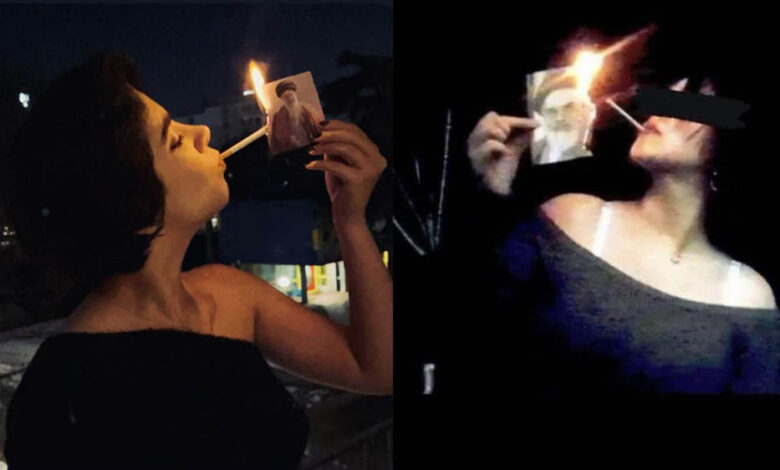 खामेनेई की तस्वीर पर सिगरेट जलाती महिलाएं