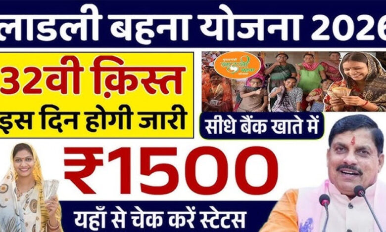 मध्य प्रदेश सरकार की ‘मुख्यमंत्री लाड़ली बहना योजना’ महिलाओं को आर्थिक रूप से सशक्त बनाने के लिए एक महत्वपूर्ण योजना है। ​वर्तमान में योजना के तहत 1 करोड़ 26 लाख पात्र महिलाओं को 1,500 रुपए प्रति माह (18000 रु सालाना) दिए जा रहे हैं। दिसंबर 2025 तक योजना की 31 किस्तें जारी की जा चुकी हैं और अब जनवरी में 32वीं किस्त जारी होना है। मिली जानकारी के अनुसार, सीएम डॉ. मोहन यादव 16 जनवरी 2026 को पात्र महिलाओं के खाते में 32वीं किस्त के 1500-1500 रुपए माखन नगर, नर्मदापुरम से जारी करेंगे।