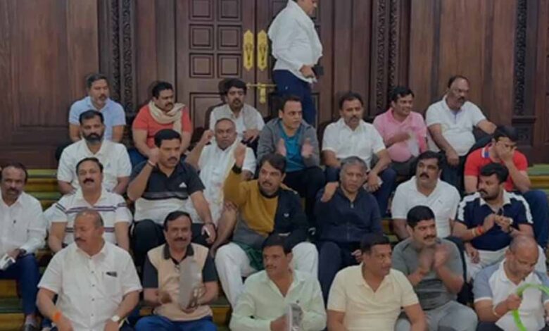 शराब घोटाला: भाजपा-जेडीएस विधायकों ने विधानसभा में बिताई रात, भजन-गीत और नारे लगाकर किया प्रदर्शन