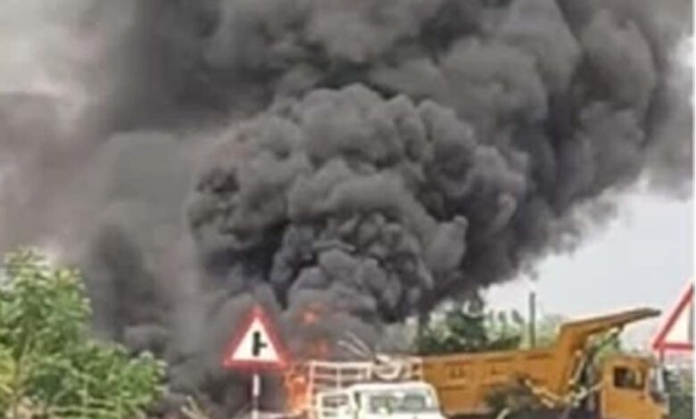 रायपुर में बड़ा हादसा: रोड मार्किंग मशीन में ब्लास्ट, आसमान में उठा धुएं का गुबार