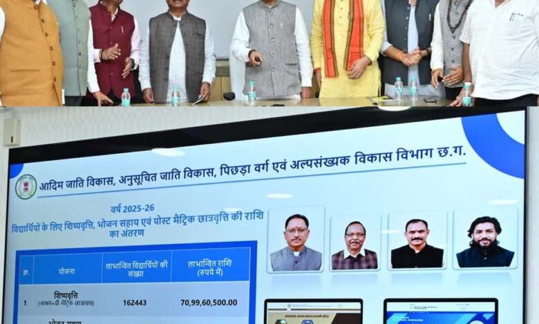 मुख्यमंत्री विष्णु देव साय की पहल पर राज्य के शैक्षणिक संस्थानों, आश्रम-छात्रावासों और तकनीकी एवं प्रोफेशनल पाठ्यक्रम में पढ़ाई करने वाले अनुसूचित जाति, जनजाति, पिछड़ा वर्ग, अल्पसंख्यक और आर्थिक रूप से कमजोर वर्ग के विद्यार्थियों को शिष्यवृत्ति एवं छात्रवृत्ति का भुगतान अब उनके बैंक खाते में ऑनलाईन किया जा रहा है। मुख्यमंत्री श्री साय ने आज मंत्रालय, महानदी भवन में आयोजित कार्यक्रम में इन वर्गों के 1.98 लाख विद्यार्थियों के बैंक खातों में 84.66 करोड़ रूपए की शिष्यवृत्ति एवं छात्रवृत्ति ऑनलाईन अंतरित की।