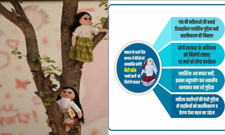मुख्यमंत्री योगी आदित्य नाथ की मंशा के अनुरूप नवरात्र के पहले दिन बागपत में बेटियों के सम्मान और सशक्तीकरण का एक अनूठा उदाहरण देखने को मिलेगा। छह बार की बॉक्सिंग विश्व चैंपियन मैरीकॉम ‘नन्ही कली’ कार्यक्रम में शामिल होकर बेटियों को सम्मानित करेंगी। गांव की महिलाओं द्वारा रिसाइकिल प्लास्टिक से तैयार की गई गुड़िया ‘नन्ही कली’ इस पहल का केंद्र है। इसके जरिए पर्यावरण संरक्षण, महिला आत्मनिर्भरता और ‘बेटी बचाओ, बेटी पढ़ाओ’ जैसे योगी सरकार के अभियानों को नई मजबूती मिलेगी।