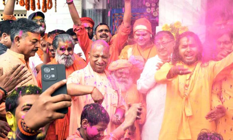 सीएम योगी ने उठाया होली गीतों का आनंद, खेली फूलों की होली