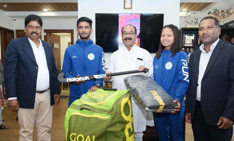 रायपुर : उप मुख्यमंत्री अरुण साव ने नेशनल सेंटर ऑफ एक्सीलेंस में परफॉर्मेंस असेसमेंट के लिए चयनित खिलाड़ियों को दिए हॉकी किट