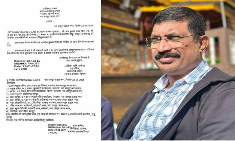 सामान्य प्रशासन विभाग की ओर से जारी आदेश में बताया गया कि सलाहकार के पद पर कार्यभार ग्रहण करने के साथ ही उन्हें कैबिनेट मंत्री का दर्जा प्राप्त होगा. इसके साथ उन्हें राज्य शासन के विशेष सचिव के समकक्ष अन्य सुविधाएं प्राप्त होगी. कृष्ण दास ‘बिजनेस स्टैंडर्ड’ के छत्तीसगढ़ प्रमुख के रूप में लंबे समय से कार्यरत रहे हैं.