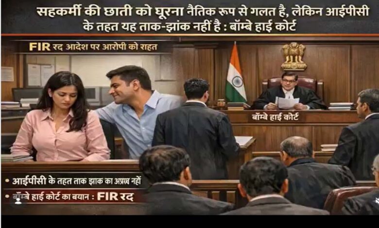 बॉम्बे हाई कोर्ट ने महिला को कथित तौर पर घूरने को लेकर एक अहम फैसला सुनाया है। कोर्ट ने कहा है कि किसी महिला सहकर्मी के शरीर को घूरना अनैतिक व्यवहार है, लेकिन इसे ताक-झांक (Voyeurism) का अपराध नहीं माना जाएगा। जस्टिस अमित बोरकर ने कहा कि ऐसे काम नैतिक रूप से गलत हैं, लेकिन वे भारतीय दंड संहिता (IPC) की धारा 354C के तहत कानूनी मानदंडों को पूरा नहीं करते हैं।