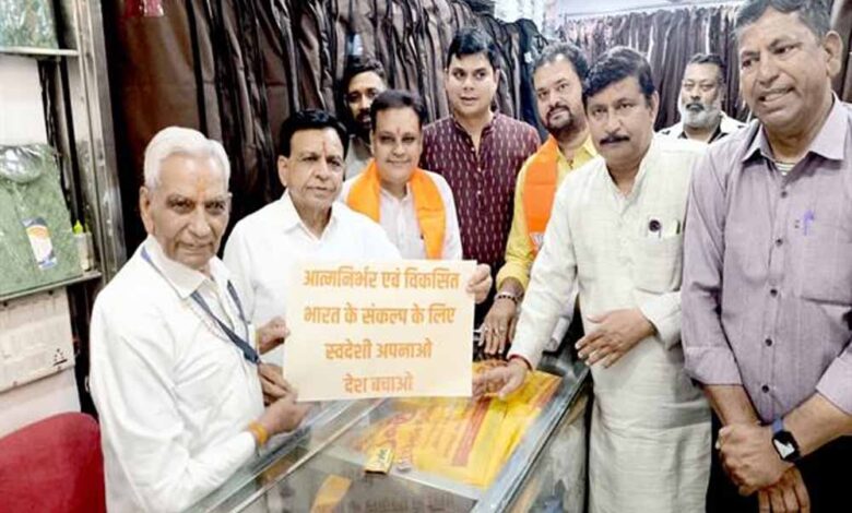 उप मुख्यमंत्री श्री जगदीश देवड़ा ने कहा कि स्वदेशी अपनाओ अभियान विकसित भारत के निर्माण की दिशा में एक मजबूत कदम है। इस समय नवरात्रि चल रही है, दशहरा और दीपावली आने वाली है, हम सब का दायित्व है कि स्वदेशी अपनाएं  और भारत को समृद्ध बनाएं। उप मुख्यमंत्री श्री देवड़ा ने यह बात रविवार को भोपाल के लखेरापुरा मार्केट के दुकानदारों के बीच जाकर कही। उन्होंने कहा कि प्रधानमंत्री श्री नरेन्द्र मोदी जी का संलल्प है कि 2047 में हमारा देश विकसित राष्ट्र की श्रेणी में आए और हमारा भारत देश विश्व गुरू के रूप में स्थापित हो।