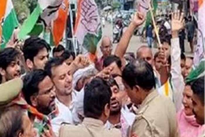 सीएम योगी तक ज्ञापन नहीं पहुंचा, पुलिस और कांग्रेसी कार्यकर्ताओं में सड़क पर हुई तीखी नोकझोंक
