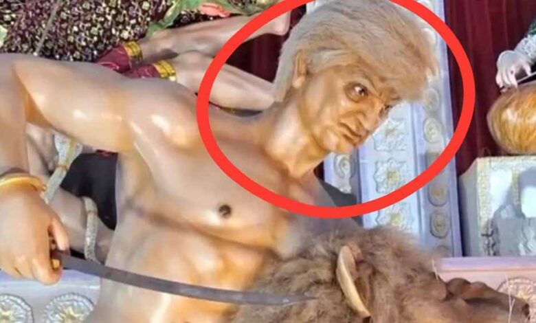 दुर्गा पूजा पंडाल में ट्रंप की मूर्ति, महिषासुर की जगह! पीएम मोदी को धोखा देने का संदेश?