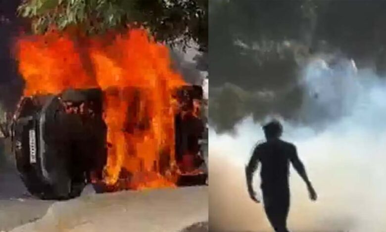 वाहनों में तोड़फोड़-आगजनी